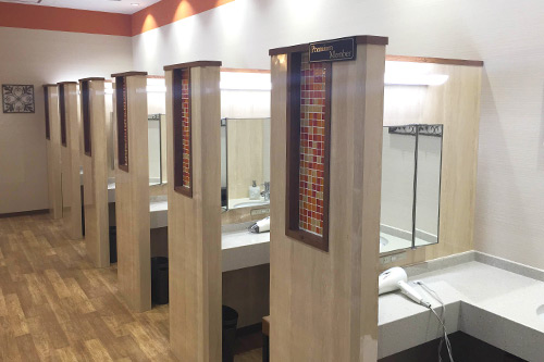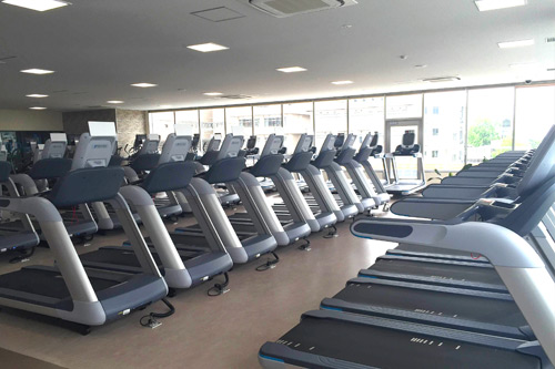 ずらりと並んだ「ランニングマシン」に、説明動画付きの「トレーニングマシン」南欧のテラスにあるようなきれいな「プール」と、広〜い「お風呂」!! 特に、ロッカールームのドレッサーは“女性に嬉しい”機能性とデザインで、きっとご満足 いただけると思いました。