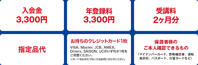| スクール別指定品 | ユニフォーム:8,470円、テキストブック:2,970円 | |