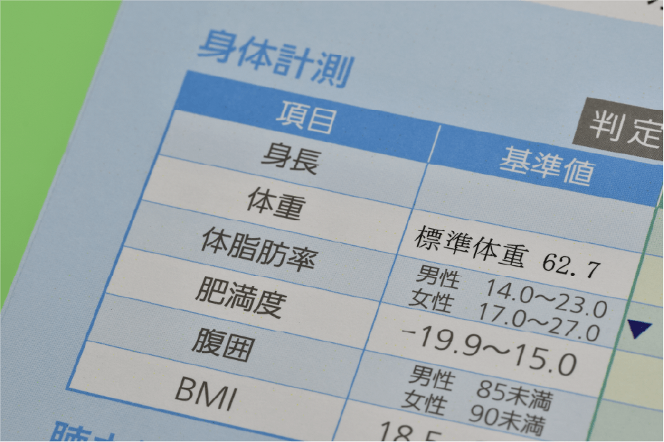 初回、4週目、8週目の計3回、体重・体脂肪率・筋肉量・ボディサイズなどの「カラダ測定」を行います。数値の変化を可視化することで、目標達成に向けたプランの調整とモチベーション維持に役立てます。