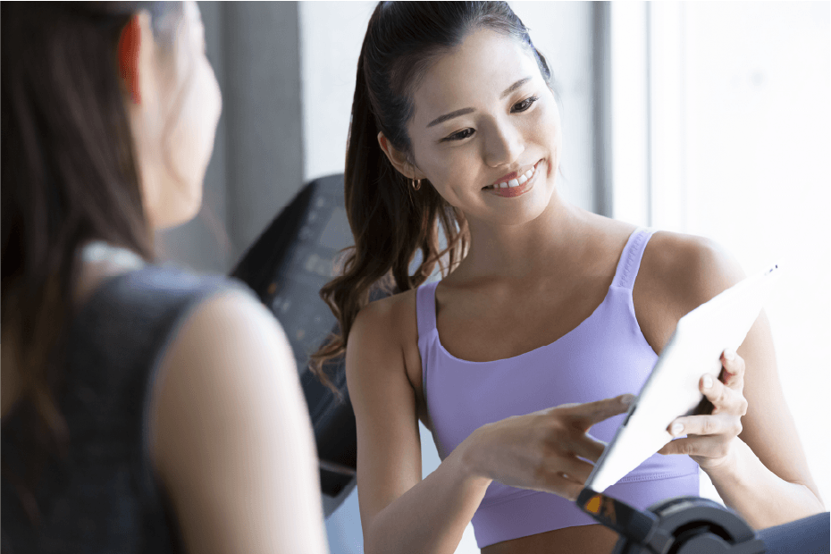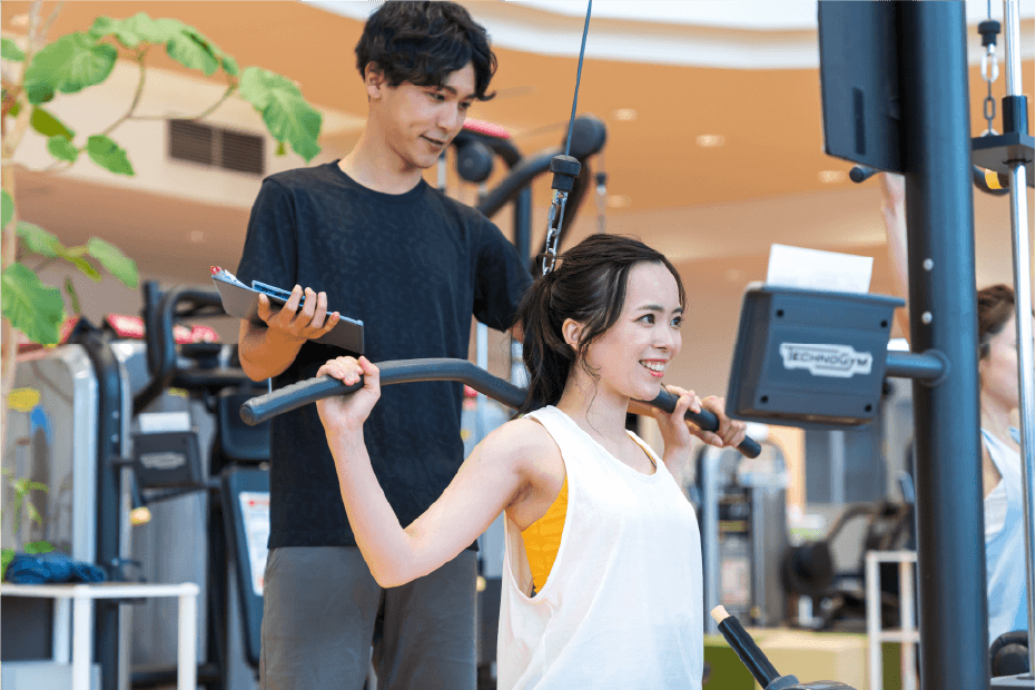 普段の食生活や生活習慣の見直しも専属ト レーナーがしっかりサポート。理想のカラダ を手に入れるための実践的なアドバイスと 知識が身につきます。