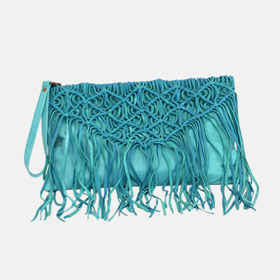 carauranaシリーズ。アラビアの砂漠民に古くから伝わる『マクラメ編』。柔らかいゴートレザーを使用し、1点1点丁寧に編みこんだ目が美しいクラッチバック。長めのハンドルを付ければポシェットとしても大活躍。