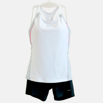 肩の2本のストラップがスタイリッシュな印象に。サイドは水抜き可能なメッシュ素材を使用。脇にピンクのラインが入ったシンプルなデザインです。