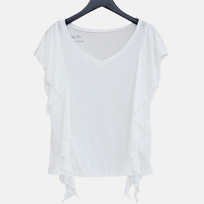 サイドのドレープがポイントのTシャツ。ゆったりとしている様で、体のラインに沿うシルエットとなっており女性らしい雰囲気を醸し出してくれます。