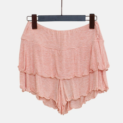 再生繊維を使用した『レーヨン・トップ』は柔らかく伸びるフィット感が特徴。少し透けた素材ですっきり着用でき、体型カバーに最適なショートパンツ